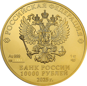 Монета выполнена из золота 999 пробы. Её вес составляет 1 кг, диаметр – 10 см. По информации пресс-службы Банка России, на лицевой стороне монеты расположено рельефное изображение герба России, а также надписи: «РОССИЙСКАЯ ФЕДЕРАЦИЯ», «БАНК РОССИИ», указан номинал монеты и год выпуска (2025).