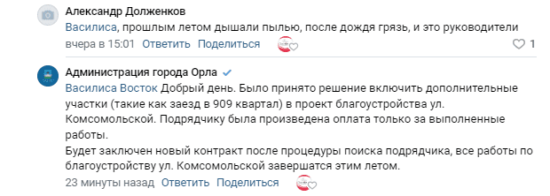 «Было принято решение включить дополнительные участки (например, заезд в 909 квартал) в проект благоустройства ул. Комсомольской. Подрядчику была произведена оплата только за выполненные работы. Будет заключен новый контракт после процедуры поиска подрядчика, все работы по благоустройству ул. Комсомольской завершатся этим летом», — пояснили в мэрии.