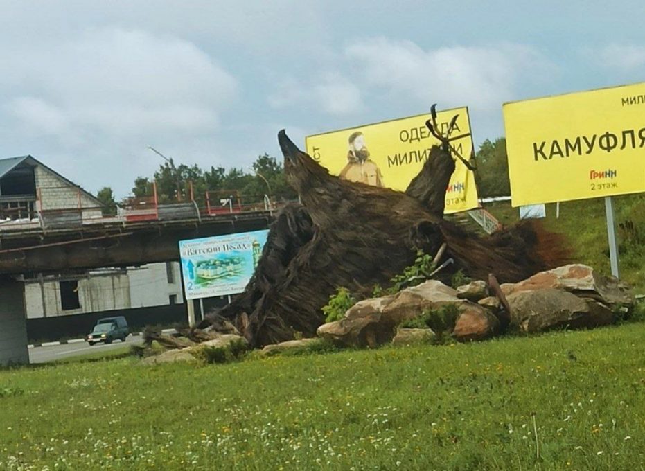 В городе Орле перевернулся главный символ города. Топиарная фигура Орла лежит на крыльях.