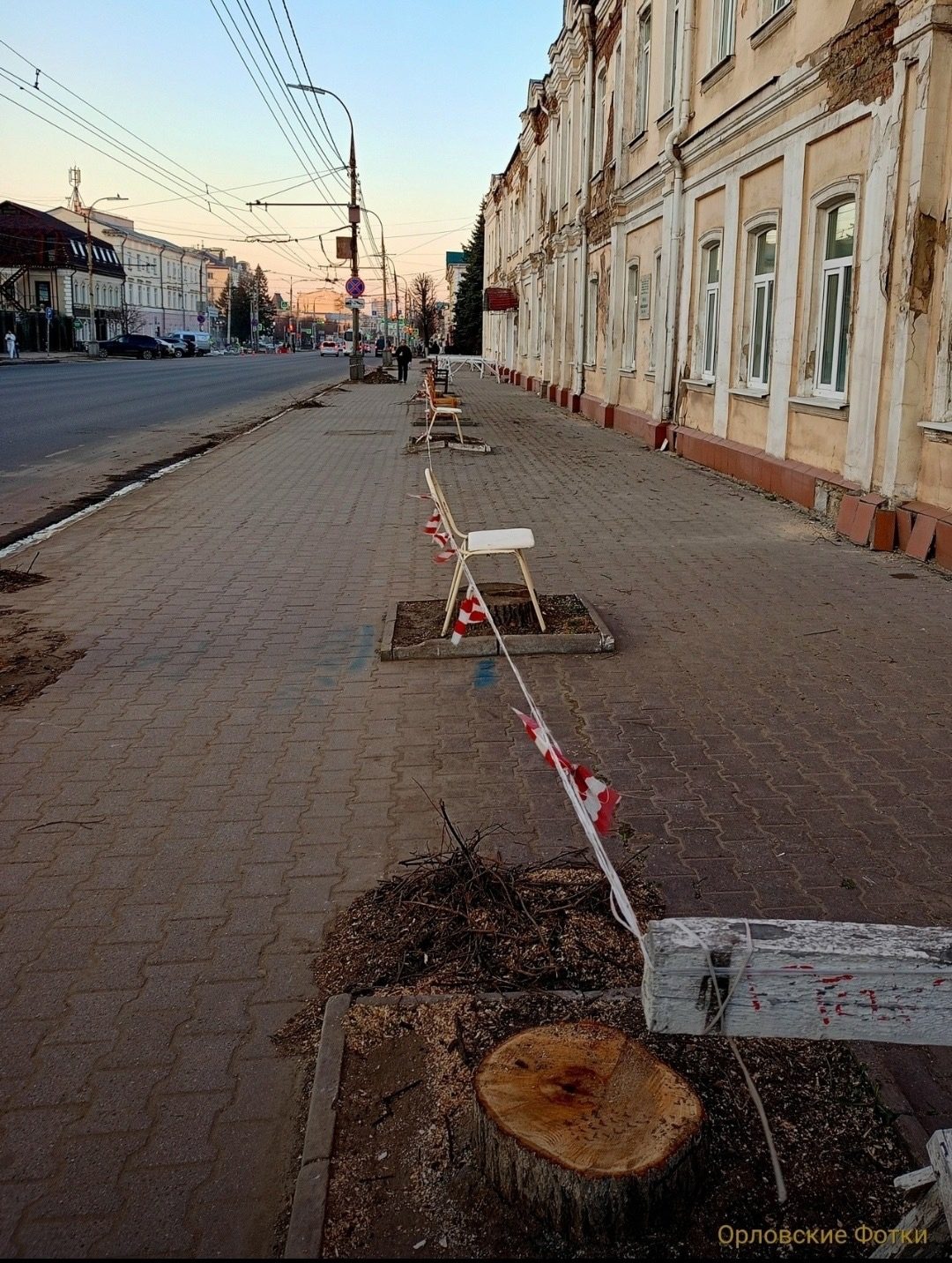 «Природа, как известно, не терпит пустоты. Вот и возле полуразрушенного Дома детского творчества пеньки приросли обычными стульями. Улица Комсомольская, вообще, изрядно оплешивела, поэтому ждём расширения подобного «феномена» и на другие спиленные точки, весь город в пеньках», — отмечает автор публикации в сообществе «Орловские Фотки».