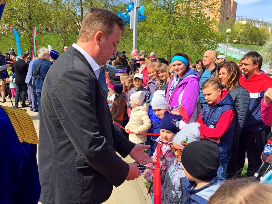 Вместе с председателем Орловского областного Совета народных депутатов Леонидом Музалевским, многодетной семьей Манько, в которой воспитываются 10 детей, артистом Орловского театра кукол Сергеем Фроликовым, поэтессами Анной и Людмилой Внуковыми и другими деятелями, так или иначе связанными с детством, перерезали ленту, торжественно запустив музыкальный светодинамический фонтан.