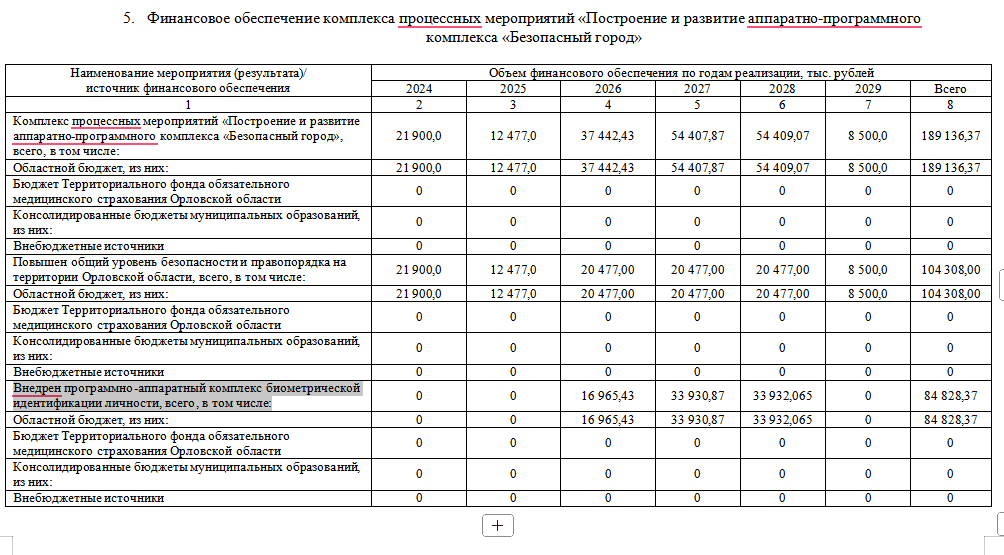 В частности, указывается, что на приобретение комплекса биометрической идентификации личности уже в следующем году планируется направить 16,9 млн рублей. В 2024-2028 годах по 33,9 млн рублей. Всего — 84,8 млн рублей.