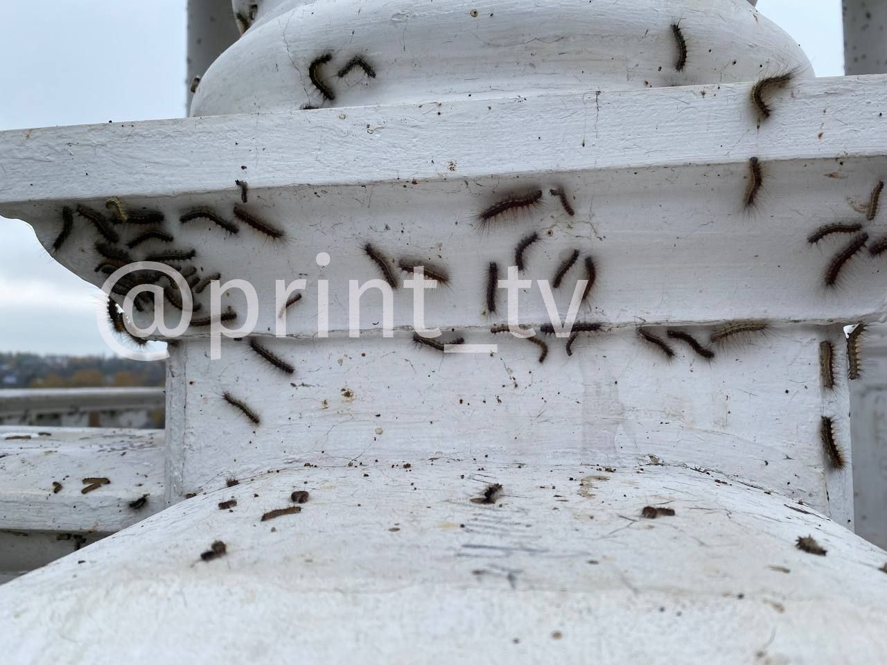 Отметим, что в первой половине октября соцсети облетели по-настоящему жуткие кадры: мохнатые гусеницы сплошь покрыли городскую ротонду. Такую картину можно было увидеть в фильмах ужасов или в страшном сне, но, к сожалению, эта была реальность. Крыша, колонны, перила буквально усеяны гусеницами повсюду.
