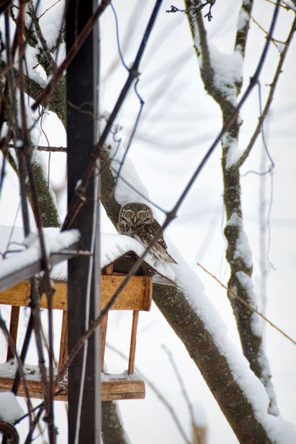 К февралю запасы пищи у воробьиного сычика чаще всего заканчиваются. Приходится снова лететь на охоту. В пасмурные дни он может «выйти из сумрака» даже днём. И тогда увидеть его – большая удача. Такую удачу поймал сотрудник нацпарка Юрий Кащеев, сделав снимок птички-невелички.