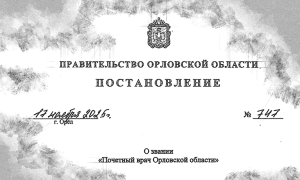По инициативе губернатора Орловской области на территории региона вводятся почётные звания для представителей разных профессий. На сайте правительства региона опубликованы постановления, согласно которым у нас скоро появятся «Почётный врач Орловской области», «Почётный деятель искусств Орловской области», «Почётный работник лесной промышленности Орловской области», «Почётный юрист Орловской области», «Почётный учитель Орловской области», «Почётный журналист Орловской области» и ряд других званий.