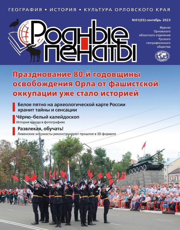 В Орловской области вышел в свет журнал регионального отделения Русского географического общества «Родные пенаты». Это первый выпуск после длительного перерыва. Он посвящён Орлу.