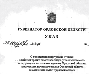 Напомним: указ о наделении городов, посёлков, деревень и сёл Орловской области статусом «Населённый пункт трудовой славы» подписал губернатор Клычков 19 сентября текущего года.