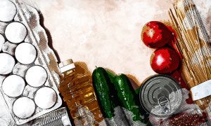 В минимальный набор входят хлеб, крупы, макароны, молочные продукты, мясо, картофель и овощи, рыба, кондитерские изделия и другое. Если его рассматривать по объёму содержания провианта, то больше всего занимает хлеб и макаронные изделия с крупами – 26,8%. Затем идёт молочка – 23,6% и мясо – 19,3%. На овощи в целом приходится чуть меньше 15%, на рыбу всего 5,3%.