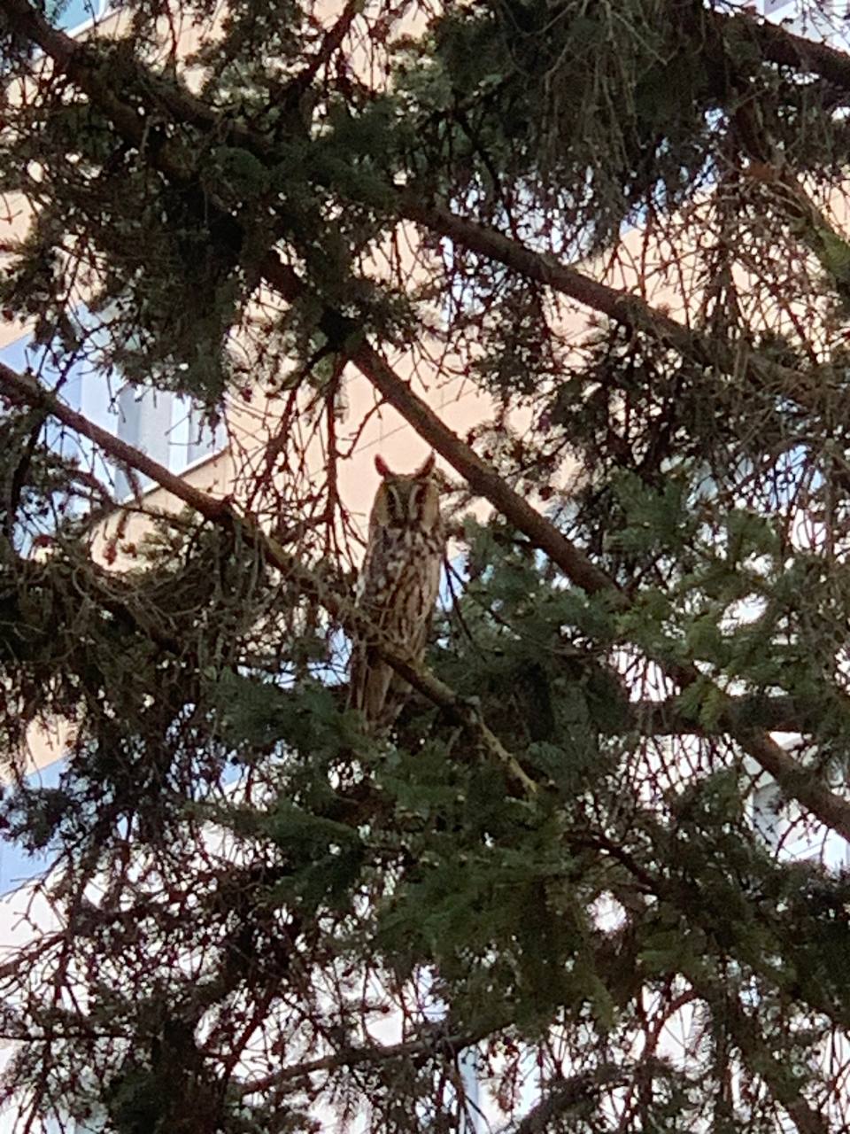 Необычный пациент замечен на территории орловской облбольницы. У одного из корпусов на старой ели обнаружена сова.