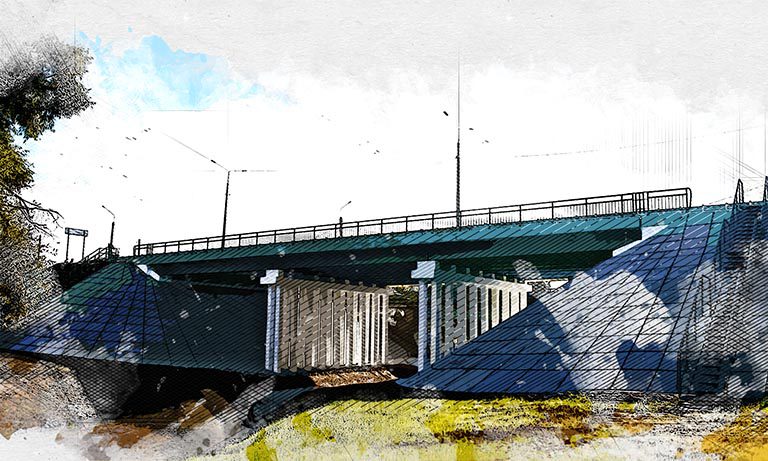 Подрядчик полностью демонтировал старое сооружение, расширил и усилил опоры моста, смонтировал новые балки и переходные плиты, всю конструкцию моста укрепили монолитным бетоном. На самом мосту также устроили «генеральную уборку»: заменили два деформационных шва, установили барьерное ограждение и лестничные сходы, переустроили линии электроосвещения, установили краевое металлическое ограждение новые дорожные знаки, нанесли разметку из термопластика.