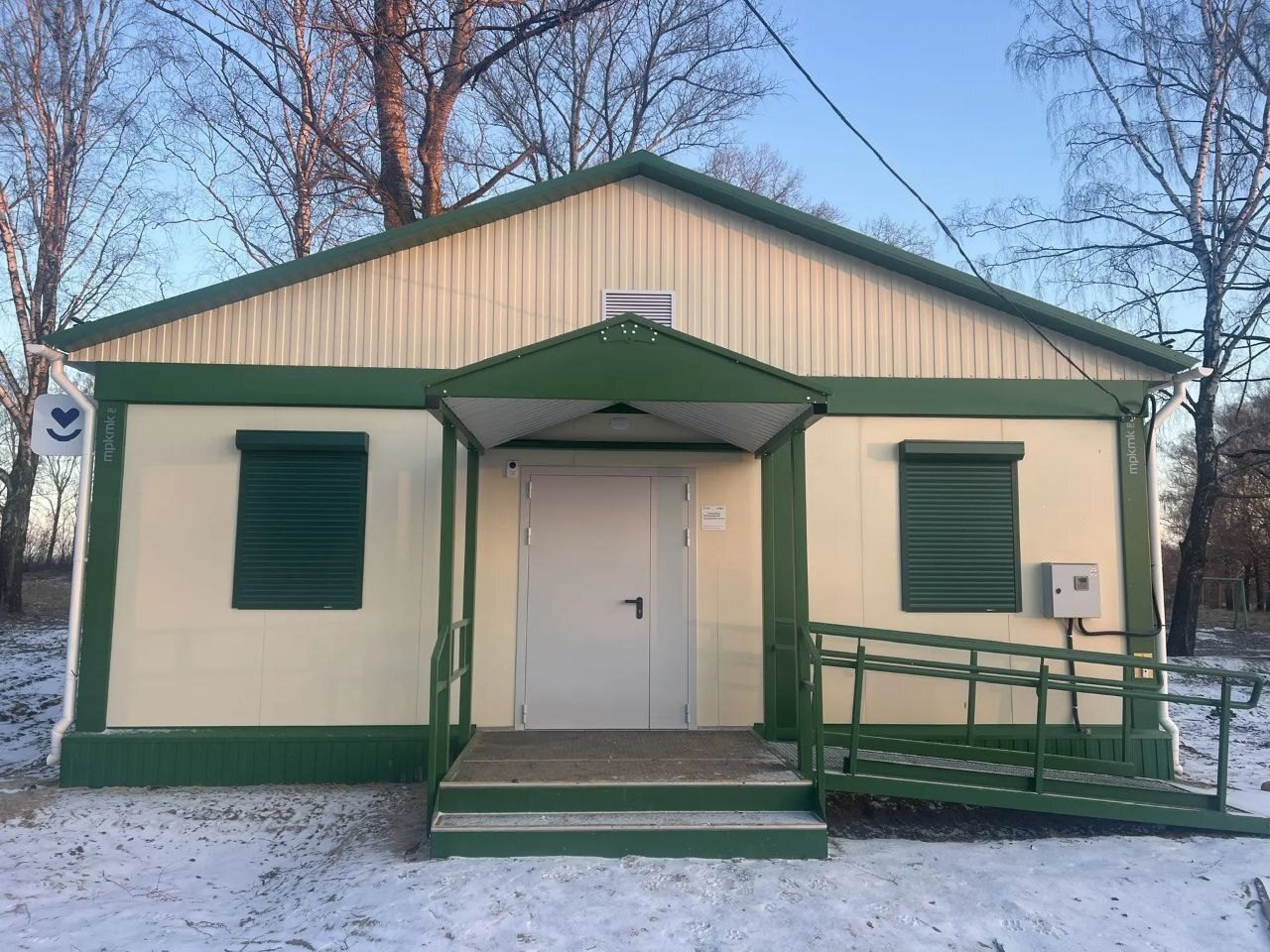 В новом здании есть приёмный и процедурный кабинеты, просторный зал ожидания для пациентов. Подключено отопление, водоснабжение и канализация.