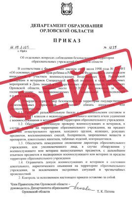 На этот раз в интернете появился якобы приказ Департамента образования Орловской области за подписью его руководителя Татьяны Патовой.