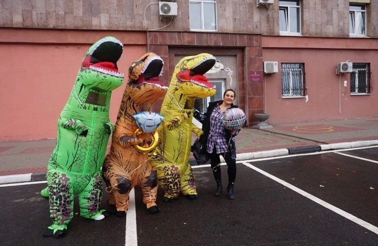 Накануне, 21 октября, в орловском ЗАГСе состоялась необычная церемония регистрация брака. Вместо мужчины и женщин кольцами и клятвами верности обменялись… два огромных динозавра. Молодожёны решили отказаться от стереотипной росписи в свадебном платье и костюме. Невестой оказалась известная орловская зоозащитница, руководитель организации помощи животным «Кот и Пёс» журналистка Виталия Румянцева. Компанию молодожёнам в выборе костюма составила свидетельница невесты.