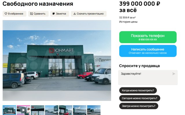 «Бонусом идёт проект на +2500 м² — готовое решение для увеличения площади. Возможность трансформации объекта в логистический центр или складской комплекс. Участок и конструкция здания позволяют гибко переоснастить ТЦ под другой формат», – указано в тексте объявления.