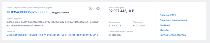 Самое интересное, что заказчиком данного проекта внезапно выступает не администрация Мценска, и даже не «Орёлгосзаказчик», а… местный Дворец культуры в лице его директора Дениса Борисова.