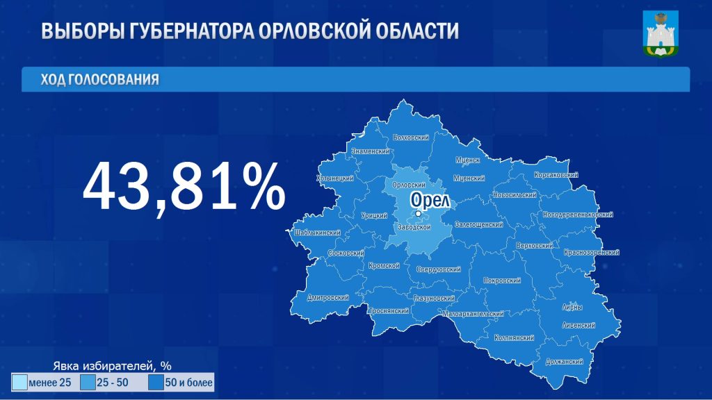 Больше половины жителей всего региона проголосовали, лишь Орёл и Орловский муниципальный округ вяло участвуют в выборах.