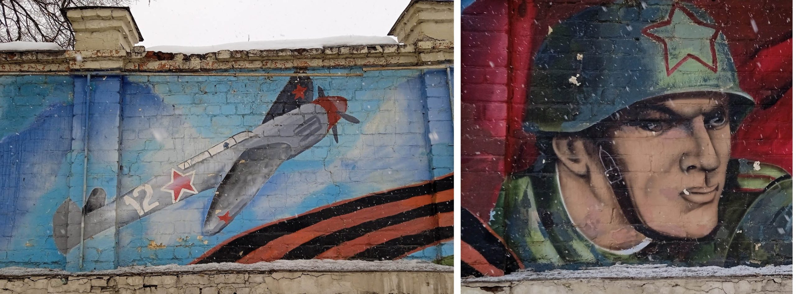 Есть в Орле мурал, который, как правило, не упоминается в парадном «меню» этого изобразительного жанра. Речь идёт о росписи долгого каменного забора стадиона «Динамо» со стороны улицы Горького. Посвящена эта «фреска» 75-летию со Дня Победы в Великой Отечественной войне. Изображение соответствует заявленной теме, но не уровню требований, предъявляемых к уличной живописи.