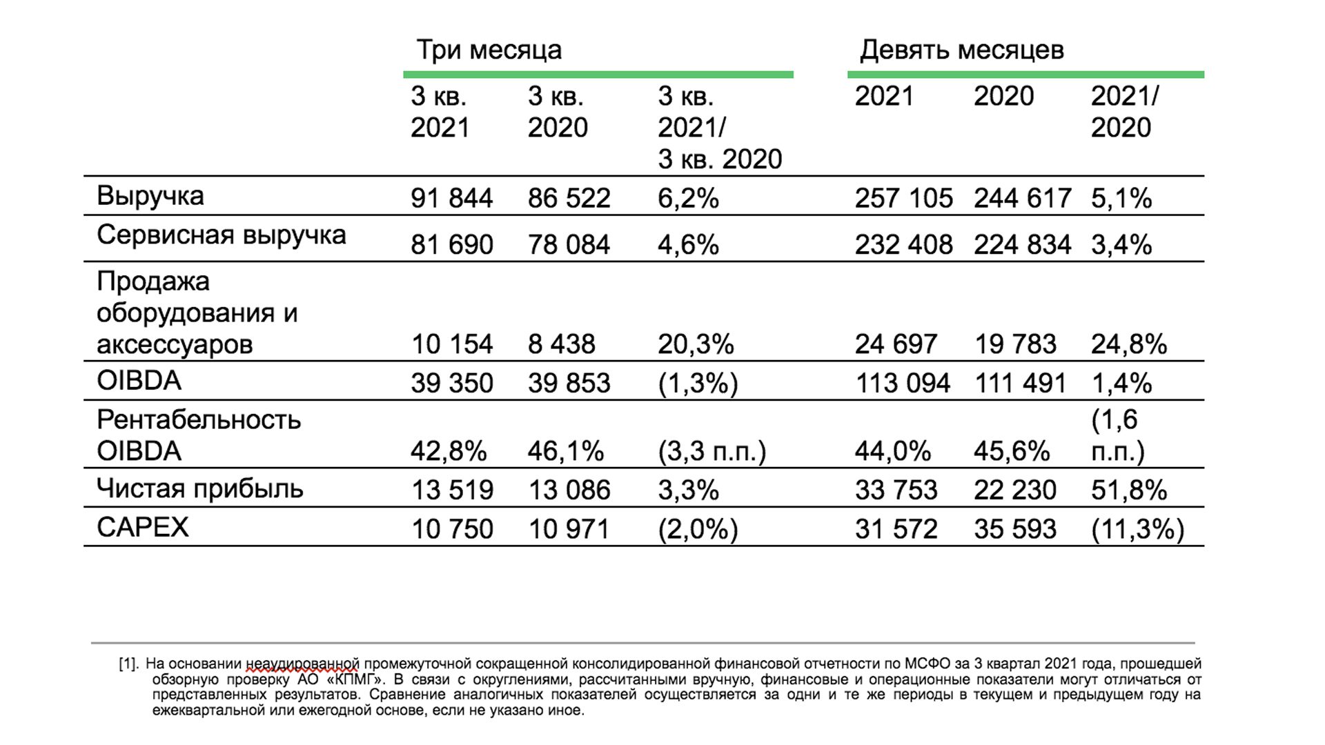 Ключевые результаты третьего квартала 2021 года[1]: