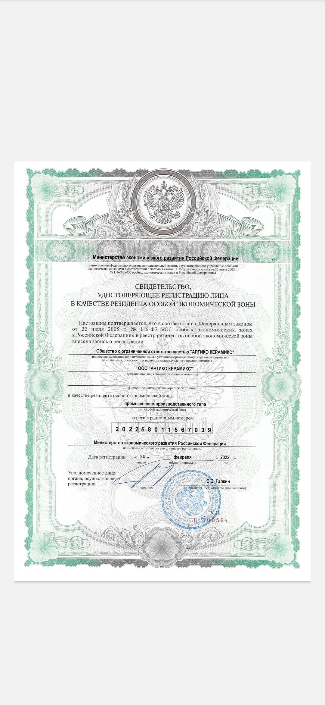 Речь идёт о компании «Артико Керамикс». Свидетельство Министерства экономического развития РФ о регистрации компании в качестве резидента особой экономической зоны промышленно -производственного типа (ОЭЗ ППТ) «Орел» было подписано в профильном ведомстве в минувший четверг, 24 февраля. Напомним, что всего несколько месяцев назад, в сентябре минувшего года, Корпорация развития Орловской области и компания «Артико Керамикс» презентовали российско-итальянский инвестпроект – строительство завода по производству керамической посуды в особой экономической зоне «Орел». Инвестор декларировал, что всего на заводе будет работать до 150 человек и планирует строительство в регионе новых фабрик с увеличением количества рабочих мест до 300. Важно, вся продукция будет изготавливаться из экологически чистого сырья, а также предусмотрено безотходное производство. Работа завода простимулирует создание смежных производств и создание новых рабочих мест и для местных упаковочных компаний, и для производителей гипса, и для перевозчиков, металлообрабатывающих компаний, типографий и сферы розничных продаж.