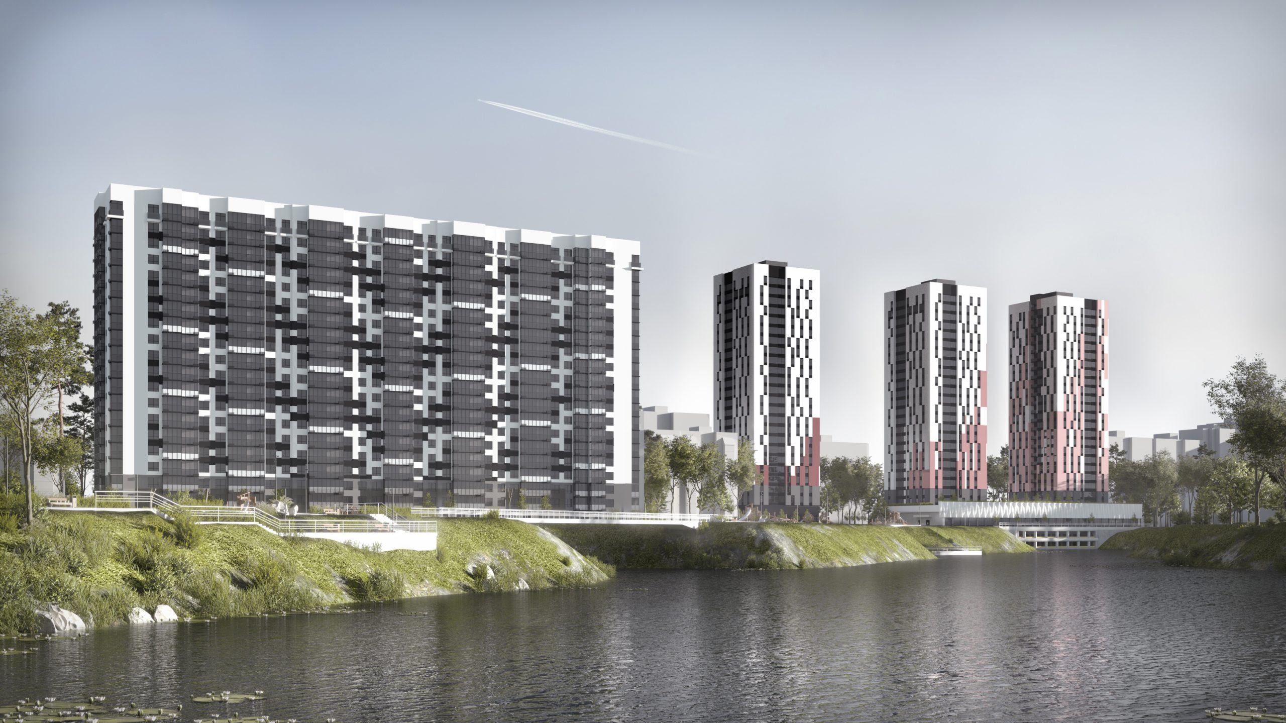 Особое внимание в проекте ЖК «Крылья» уделено грамотному благоустройству придомовой территории. С учётом всех современных тенденций в ландшафтном дизайне будет реализована концепция «Двор без машин». Площадку между высотками и водоемом планируется разбить на два уровня и грамотно зонировать на локации: детские, игровые, смотровые. Вдоль озера протянется беговая дорожка. Словом, для детей и взрослых будет создана комфортная и безопасная среда, позволяющая отлично проводить время на свежем воздухе.