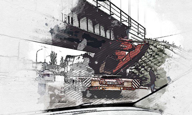 В Орле под мостом застрял автовоз с экскаватором