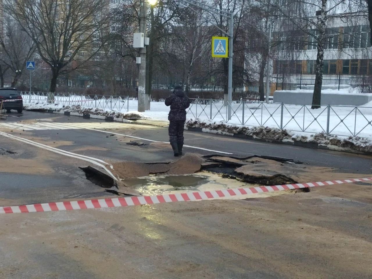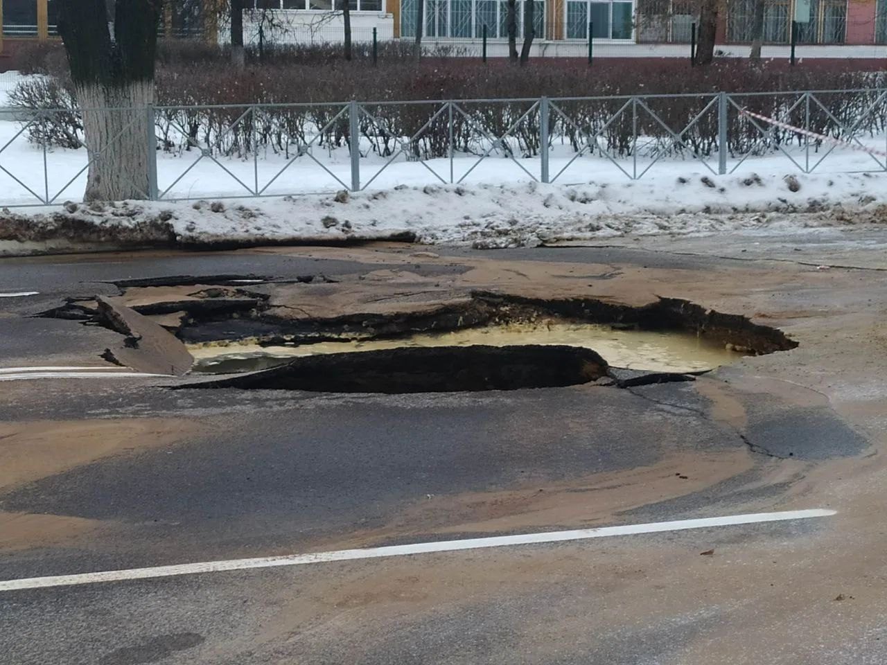 «Дыра на полдороги»: в Орле возле гимназии № 19 провалился грунт