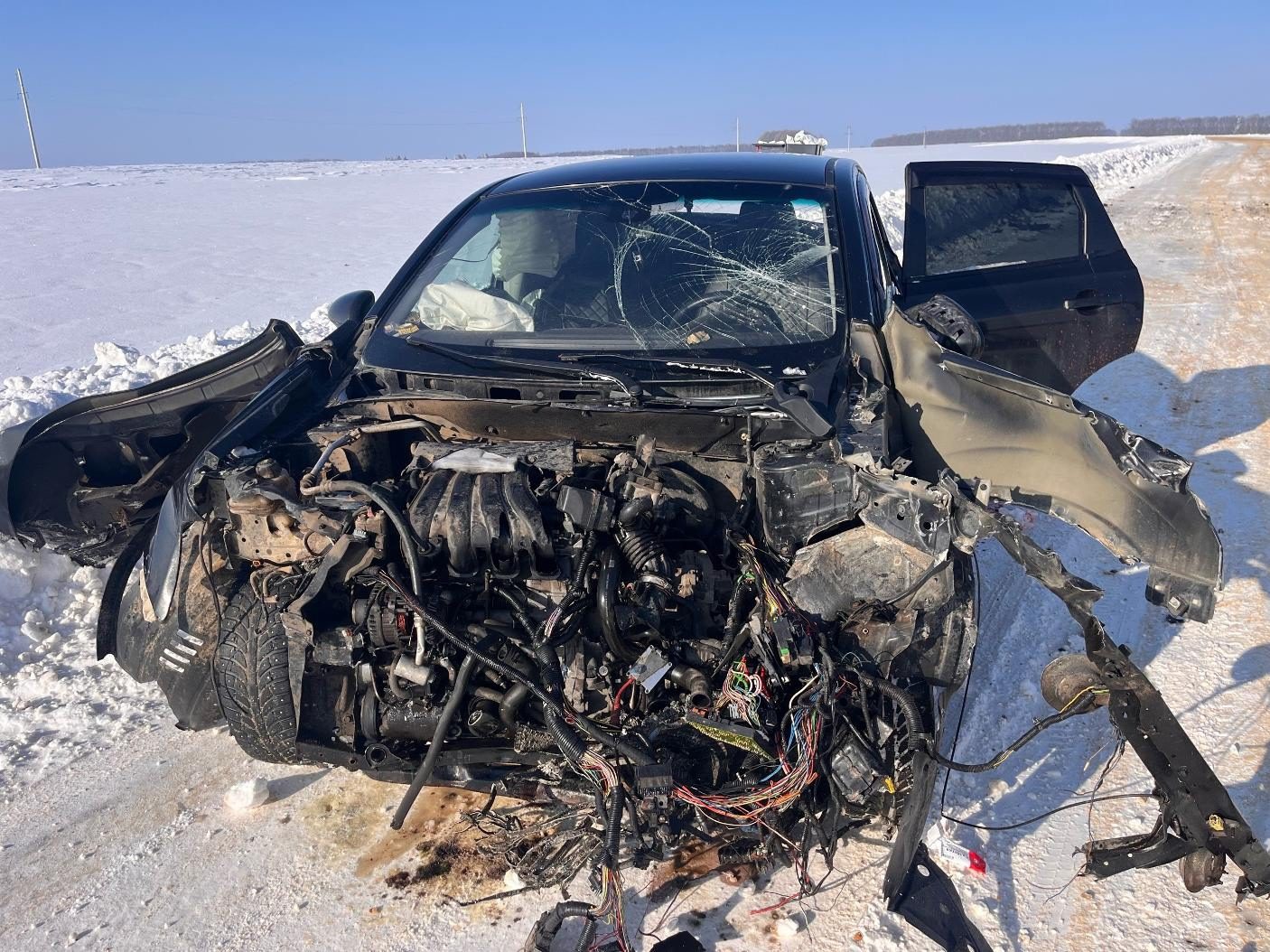 Первое ДТП с пострадавшим произошло в 11:40 на дороге «Хомутово-Александровка». 43-летний водитель «Ниссан Кашкай» ехал из села Корсаково в сторону Ливен и во время движения выехал на полосу встречного движения. Нарушение ПДД привело к столкновению иномарки с КамАЗом с прицепом. В результате пострадал водитель «Ниссана». Его госпитализировали в Новодеревеньковскую ЦРБ. Серьёзно пострадало и само транспортное средство. Судя по кадрам с места ДТП, иномарку отремонтировать уже не получится.