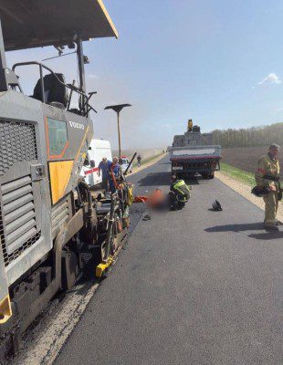 На орловской трассе рабочий асфальтоукладчика попал под колёса грузовика