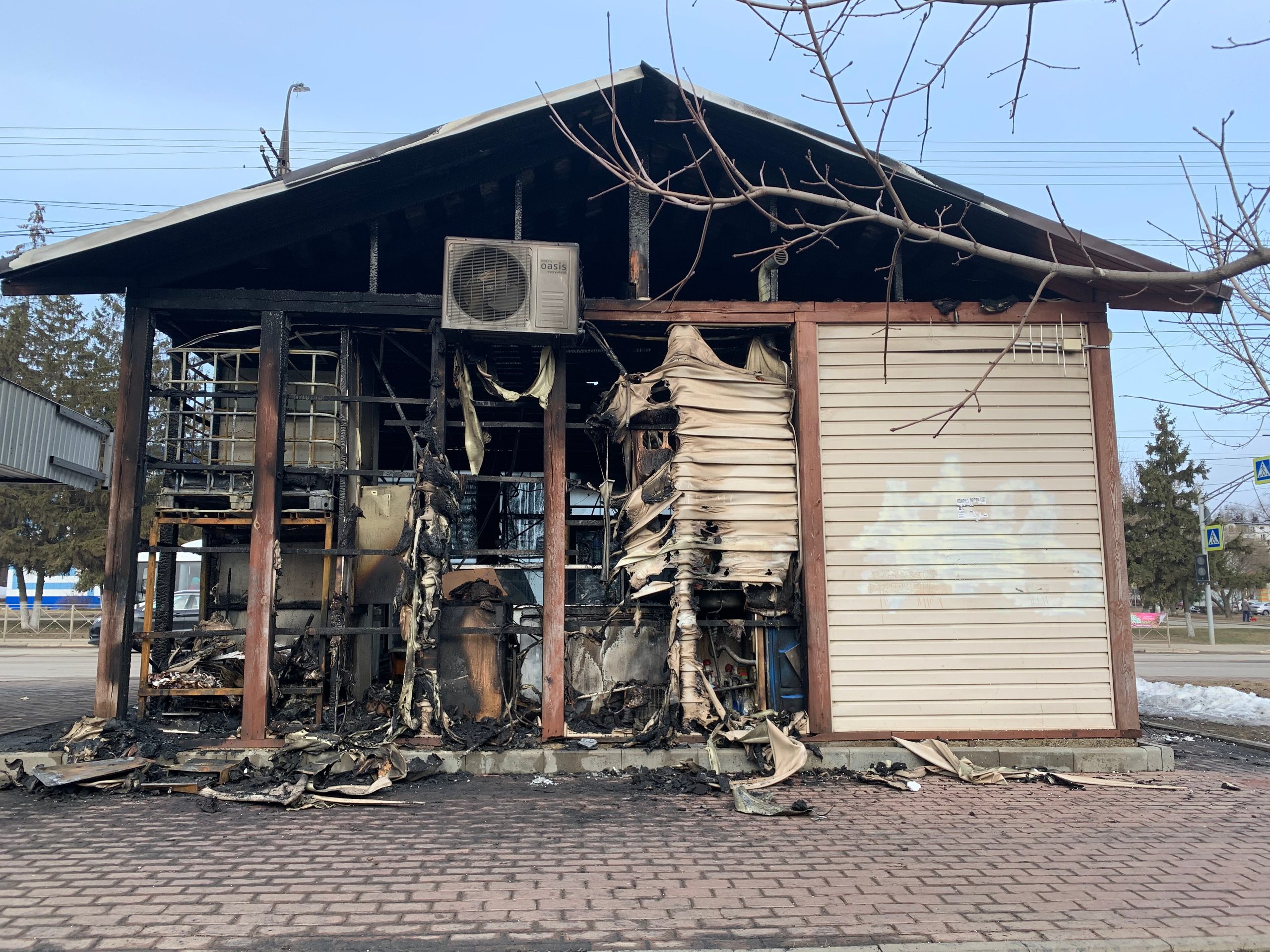 Названа предварительная причина пожара в павильоне на остановке Магазин «Орёл»