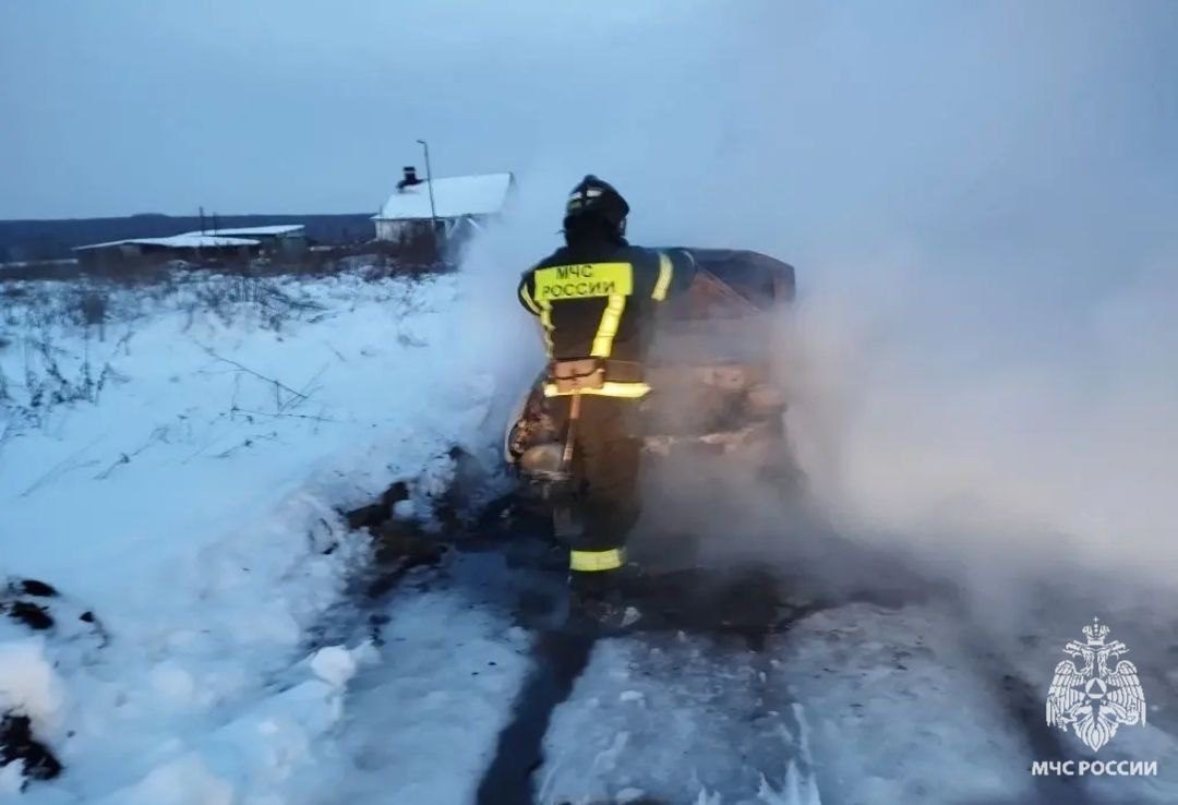 Первый вызов на возгорание авто поступил утром 23 января. ЧП произошло в деревне Себякино Урицкого района. Автомобиль загорелся внутри гаража. На момент прибытия пожарных авто горело по всей площади, была угроза распространения огня. На месте работали 11 огнеборцев на трёх единицах спецтехники. Никто из людей не пострадал. Автомобиль выгорел полностью, частично пострадал сарай. Предположительная причина пожара – аварийный режим работы электрооборудования в автомобиле.