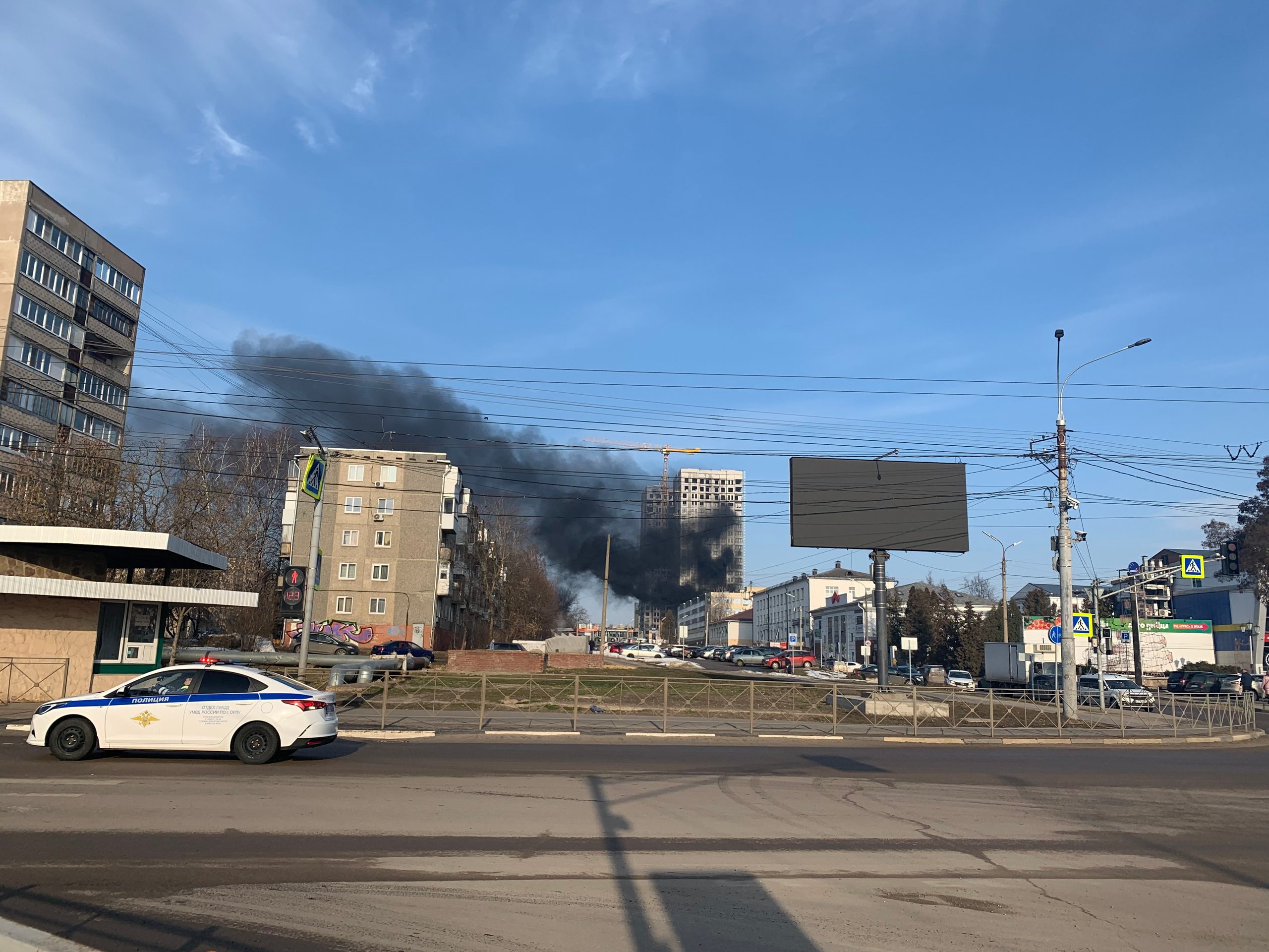 Ранним утром 19 марта часть Советского района Орла ул. Ломоносова накрыл чёрный столб дыма. Выяснилось, что его причиной стал пожар, произошедший на строительной площадке многоэтажного гиганта..