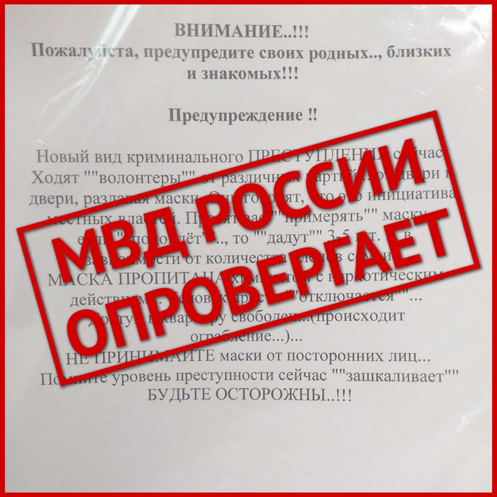 В последние недели в чатах орловцев появляются сообщения о неких «добровольцах». Якобы они ходят по квартирам, раздают бесплатно маски. А в этих масках – химикат, вдыхая который, человек теряет сознание. Рассылка предупреждает: сделано это, чтобы совершить ограбление.