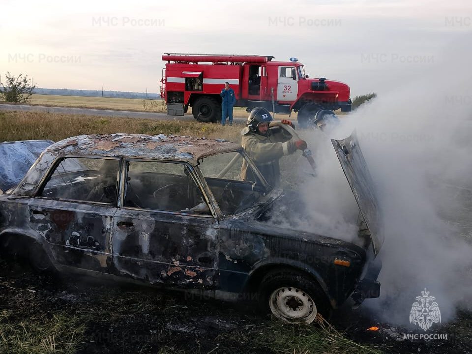 В Глазуновском районе Орловской области легковой автомобиль в результате ДТП загорелся. Чудом никто не пострадал.