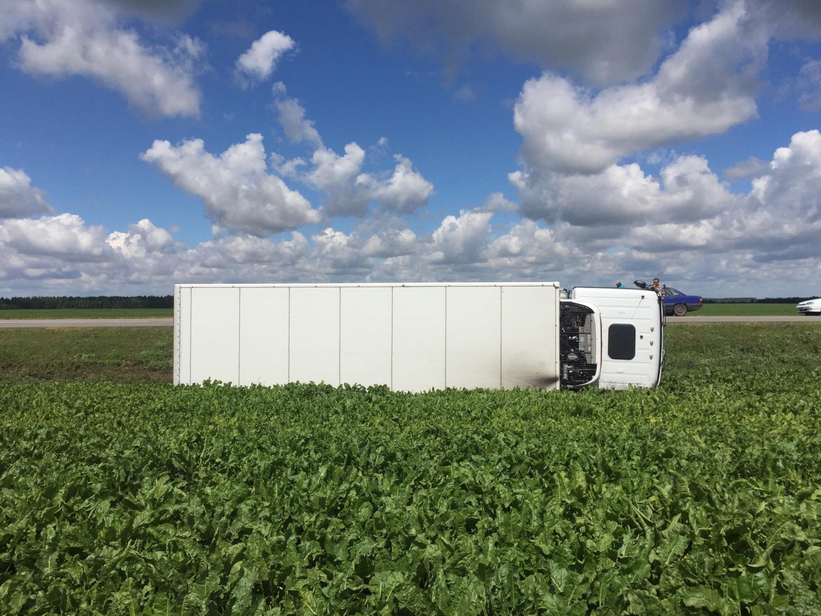 В субботу, 6 июня на 28-ом километре автодороги Змиёвка–Глазуновка–Тросна перевернулся грузовик Mercedes AF673800.