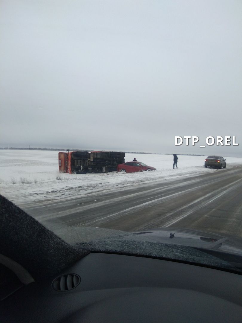 Сообщение подтвердили в УГИБДД. Происшествие случилось сегодня утром на 117 км трассы Орёл-Тамбов. 34-летний водитель Hyundai не справился с управлением. Транспорт, везущий продукты в супермаркет, съехал в кювет.