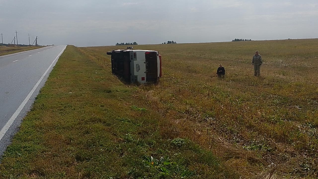 На момент аварии внутри салона находились два пассажира. Они выбрались из автобуса самостоятельно и уехали с места на попутках. Водителю рейсового автобуса медицинская помощь не потребовалась.