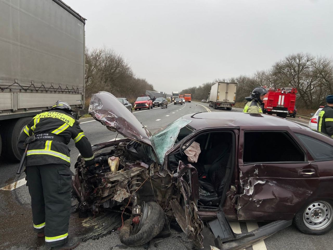 На место аварии уже прибыли пожарные. Есть пострадавшие.