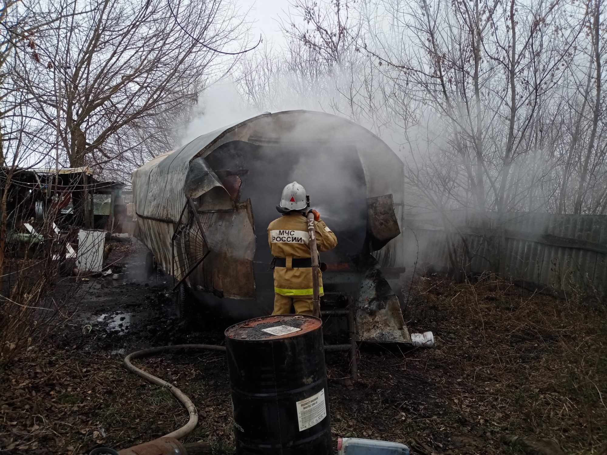 Утро воскресенья в селе Кунач, Глазуновского района, Орловской области началось с чрезвычайной ситуации. В районе 9 часов утра на территории одного из домовладений загорелся прицепной металлический вагон.