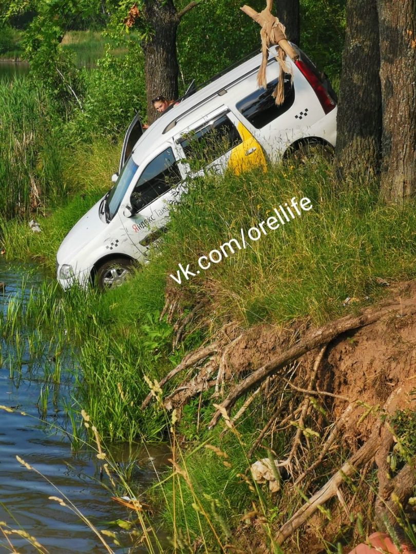В соцсетях появились фотографии инцидента, который произошёл на Опытных прудах под Орлом. Автомобиль такси «завис» на крутом берегу пруда.