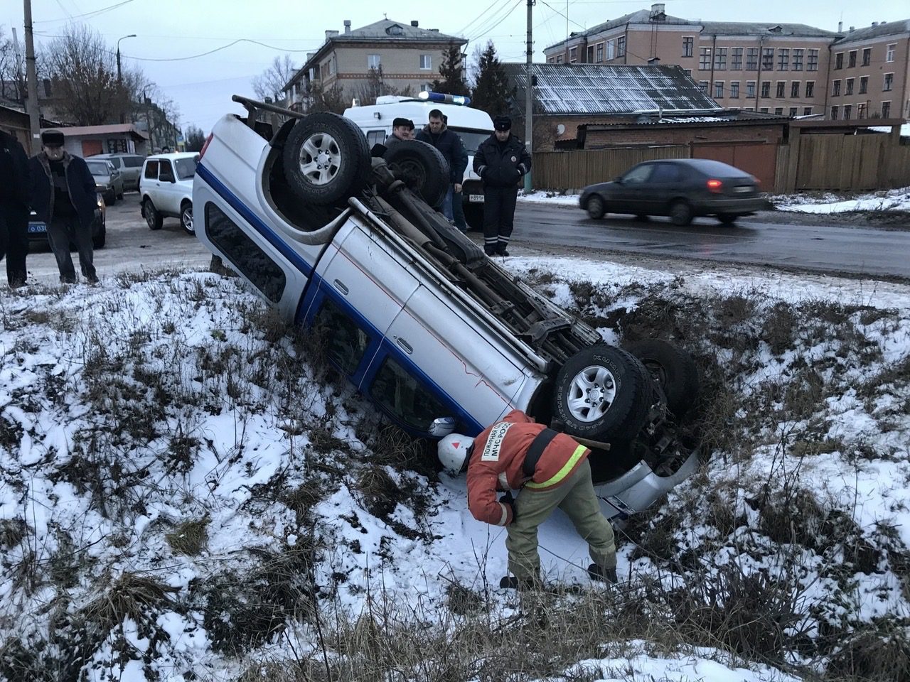ДТП проищошло 10 января во Мценске, в пятом часу вечера. 63-летний водитель двигался за рулем автомобиля марки Mazda со стороны ул. Тургенева в сторону ул. Кочергина. В районе 44-го дома по ул. Ленина он потерял контроль над транспортом, машина выехала с дороги и опрокинулась.
