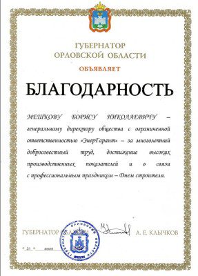 Ну а пока суд да дело, на День строителя в этом году, традиционно отмечаемый каждое второе воскресенье августа, Борис Мешков был отмечен благодарностью губернатора.
