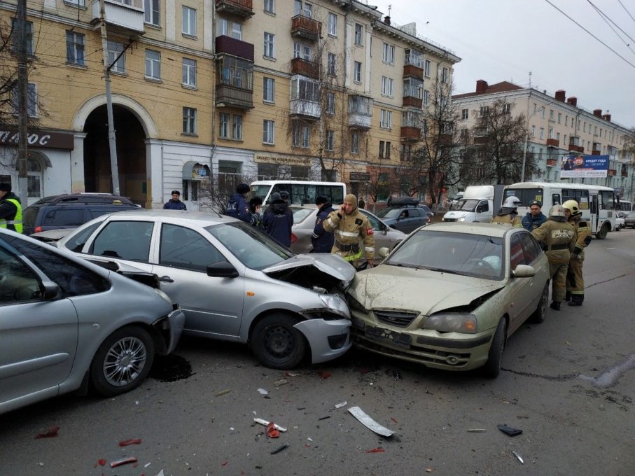 В регуправлении ГИБДД сообщили, что водитель Hyundai Elantra допустил столкновение с автомобилем Lada Granta, который следовал навстречу. В свою очередь, отечественная легковушка столкнулась с Citroen Picasso с последующим столкновением c Nissan Tiida. «Ситроен» в это время столкнулся с маршруткой.