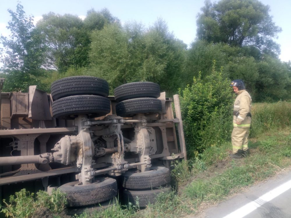 В Кромском районе большегруз улетел в кювет. Есть пострадавший