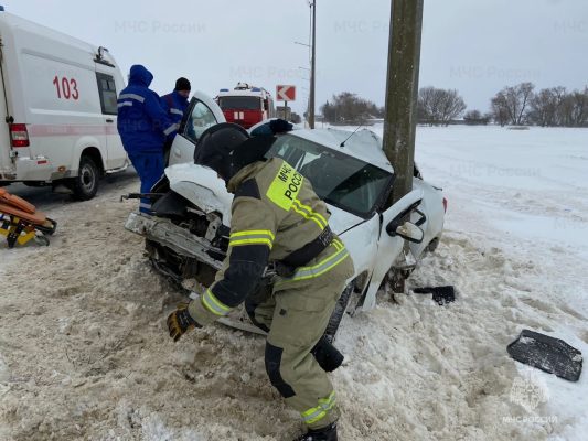 Как сообщает пресс-служба ГУ МЧС по Орловской области, авария случилась 11 января в 10:43 на автодороге «Орёл-Тамбов». В районе 107-го километра водитель Renault Logan не справился с управлением, и автомобиль вылетел в кювет, где врезался в опору освещения.