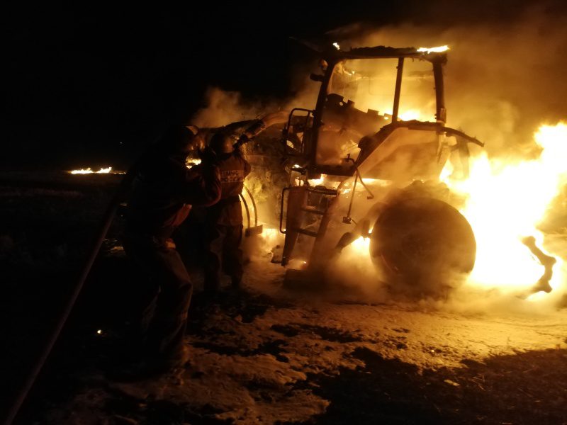 Была угроза, что огонь перекинется на прицепленную к трактору пресовальную машину.