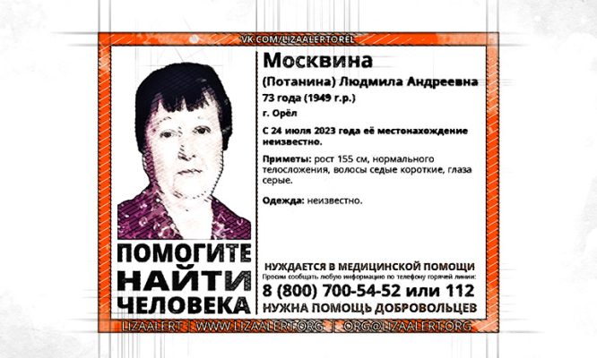 С 23 июля о местонахождении Людмилы Москвиной 1949 года рождения ничего не известно.