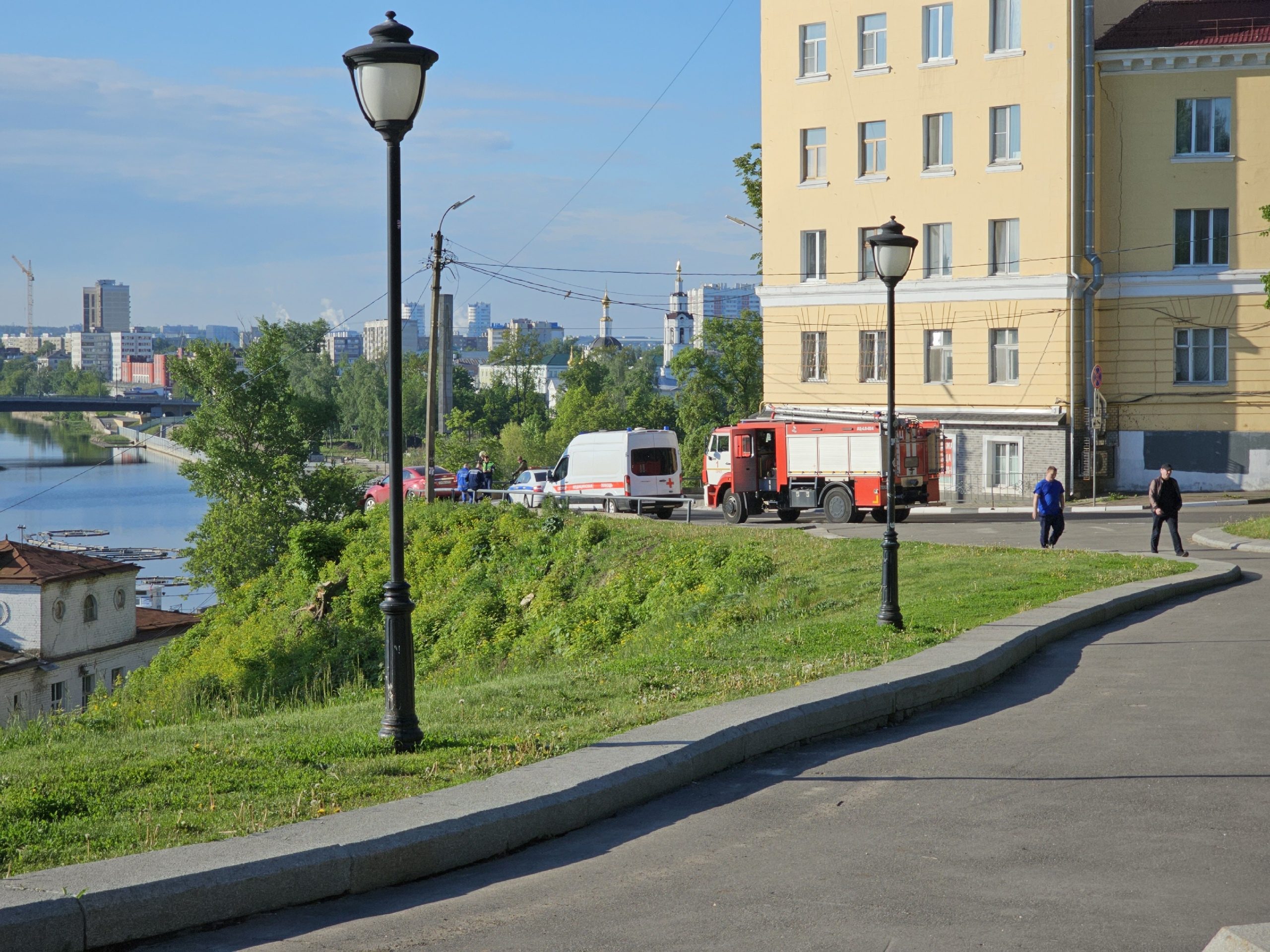 Водитель «Шевроле» ехал по склону, ведущему от Горпарка к Детскому парку. Судя по кадрам, падения удалось избежать чудом, перед иномарки повреждён.