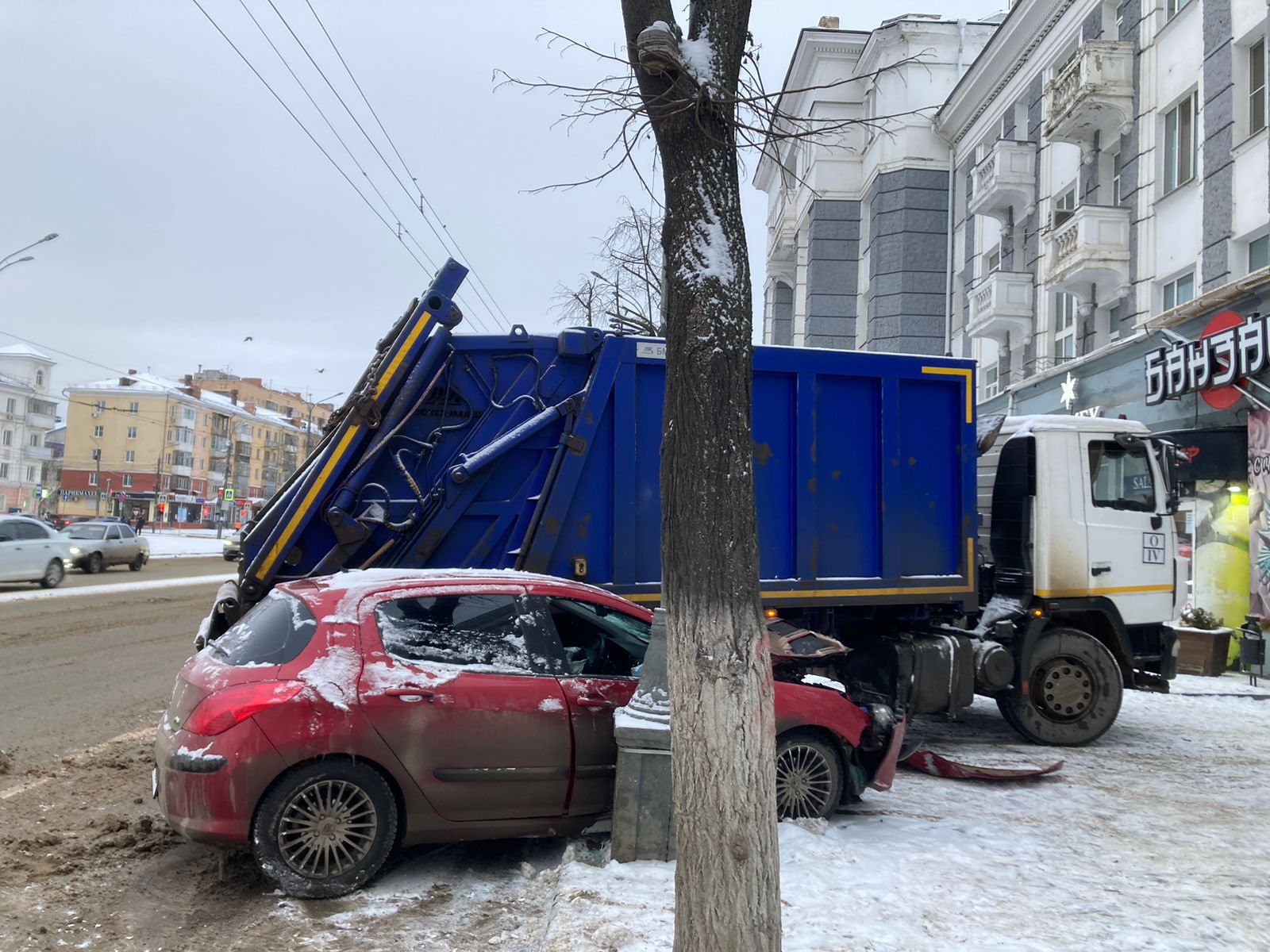 В Орле мусоровоз впечатал легковушку в столб