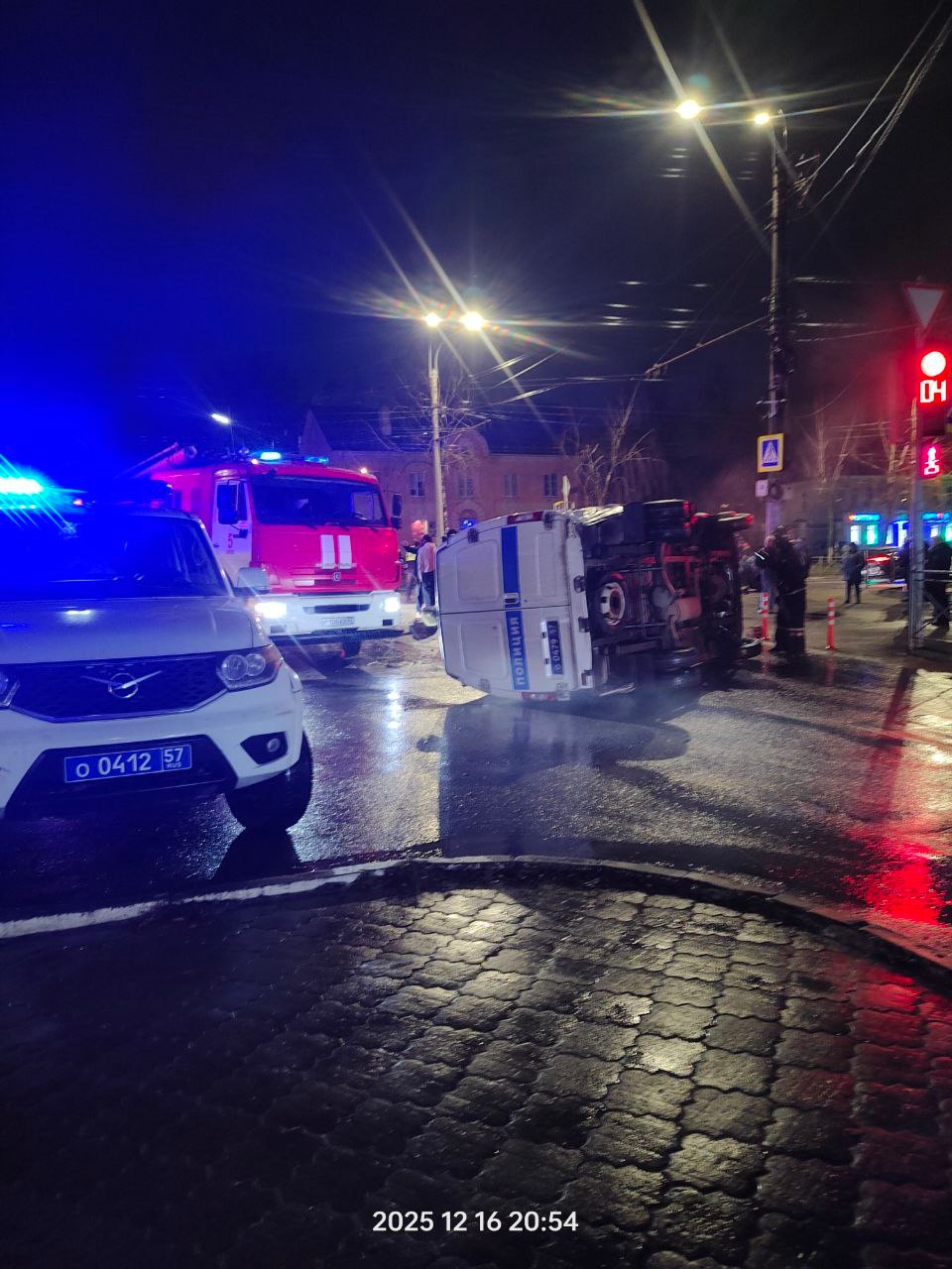 Машина правоохранителей опрокинулась, а передняя часть второго авто сильно покорёжена. По заявлениям орловцев, полицейские ехали с включённым спецсигналом.