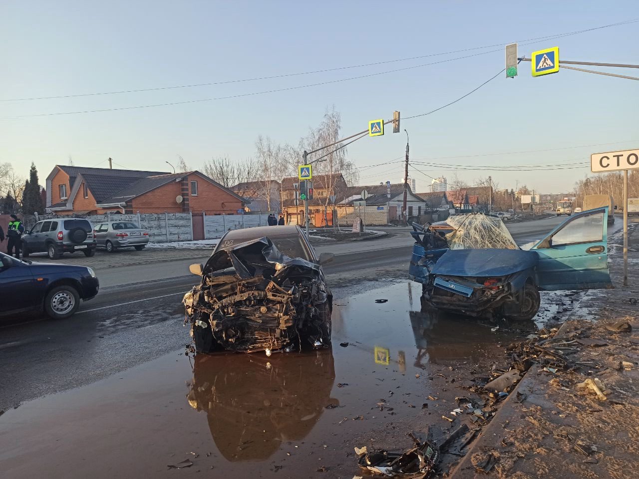 Судя по кадрам с места ДТП, столкновение было весьма серьёзным. Автомобили сильно повреждены и уже не подлежат восстановлению.